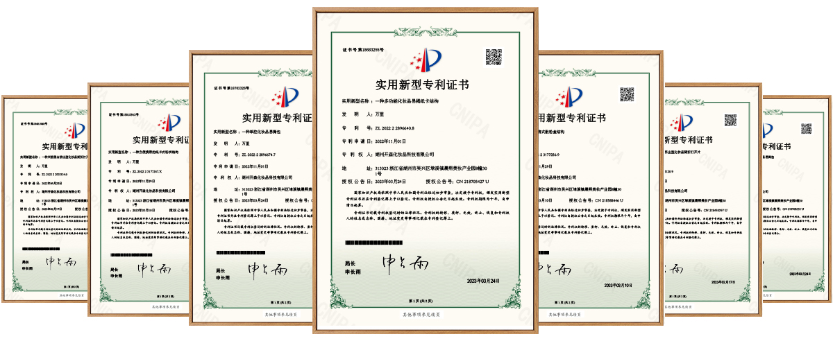 經(jīng)過(guò)多年的研發(fā)創(chuàng)新,湖州開森現(xiàn)擁有【一種便攜式散粉盒結(jié)構(gòu)】、【一種多功能化妝品易揭紙卡結(jié)構(gòu)】、【一種方便攜帶的紙卡式粉餅結(jié)構(gòu)】、【一種雙腔混合擠出型化妝品易撕包】、【一種雙腔掰折擠出型化妝品掰折打開片】、【一種單腔掰折擠出型化妝品掰折打開片證書】等多種專利,可以根據(jù)客戶的不同需求,進(jìn)行深度創(chuàng)新,滿足市場(chǎng)和產(chǎn)品日益更新的需求。